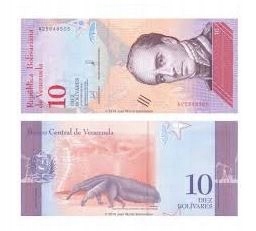 Банкнота номіналом 10 боліварів із Венесуели 2018 року, стан банку.
