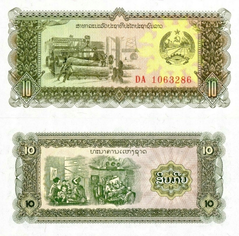 Банкнота з Лаосу 10 КІП, банківська держава.
