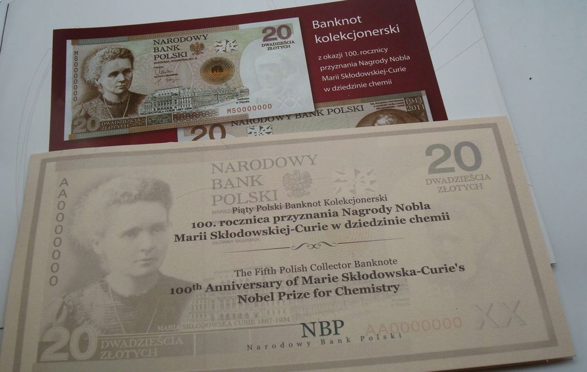 банкнота 20 PLN Skłodowska 2011 + папка NBP
