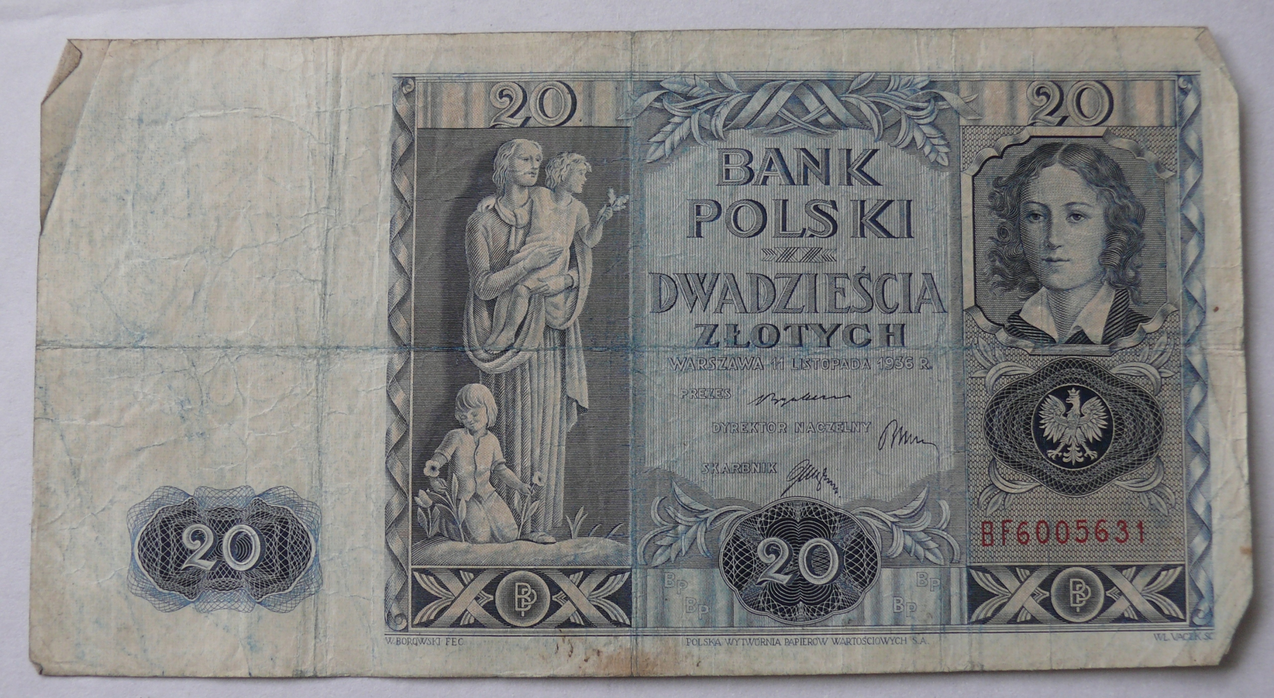 Просматривая «Банкнота 20 злотих 1936 р. сер. BF», вы можете быть уверены, что данный товар из каталога «1919 - 1939 золотые» будет доставлен из Польши и проверен на целостность. В цене товара, указанной на сайте, учтена доставка из Польши. Внимание!!! Товары для Евросоюза, согласно законодательству стран Евросоюза, могут отличаться упаковкой или наполнением.
