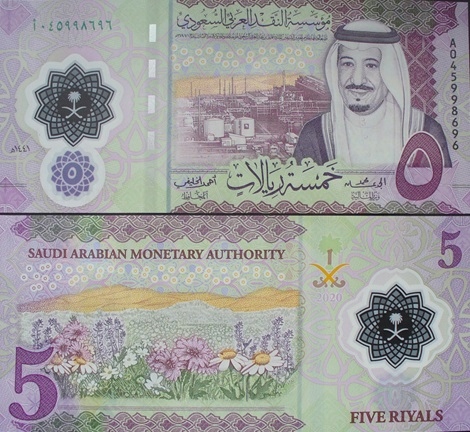 Банкнота 5 ріалів 2020 (Саудівська Аравія) полімер