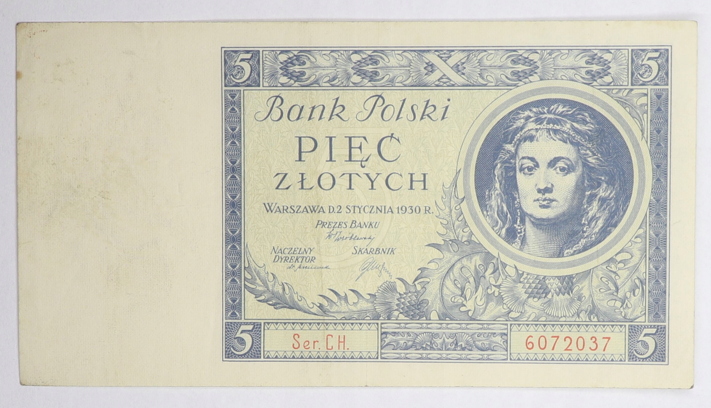 Банкнота 5 Zlotys - 1930 - сир. C H.