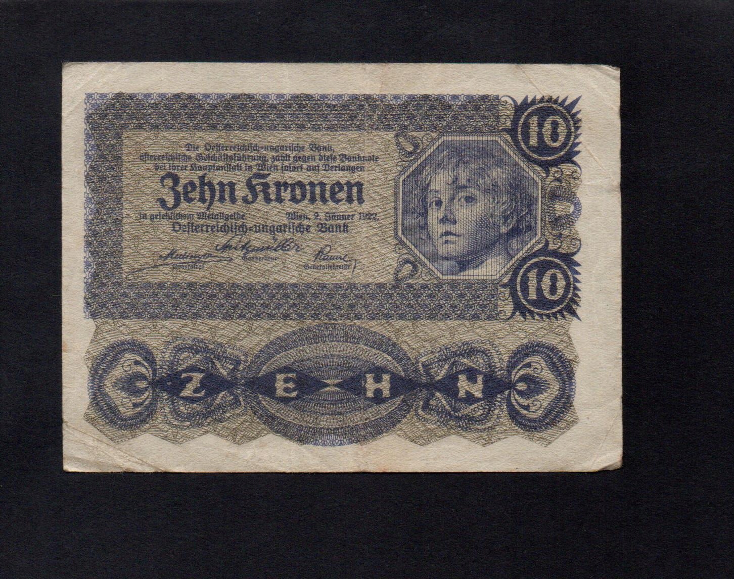 БАНКНОТА АВСТРІЇ - 10 крон - 1922 р