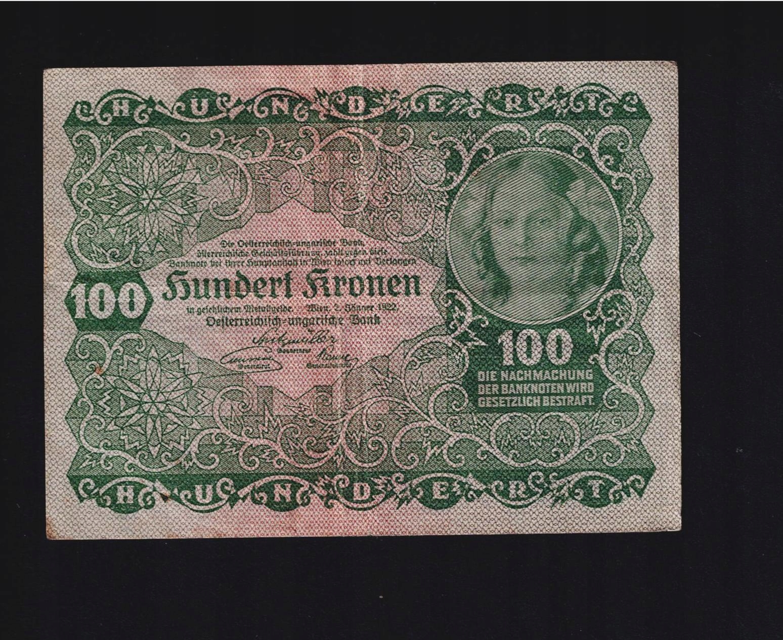 БАНКНОТА АВСТРІЯ, Австро-Угорщина -- 100 крон -- 1922 р.