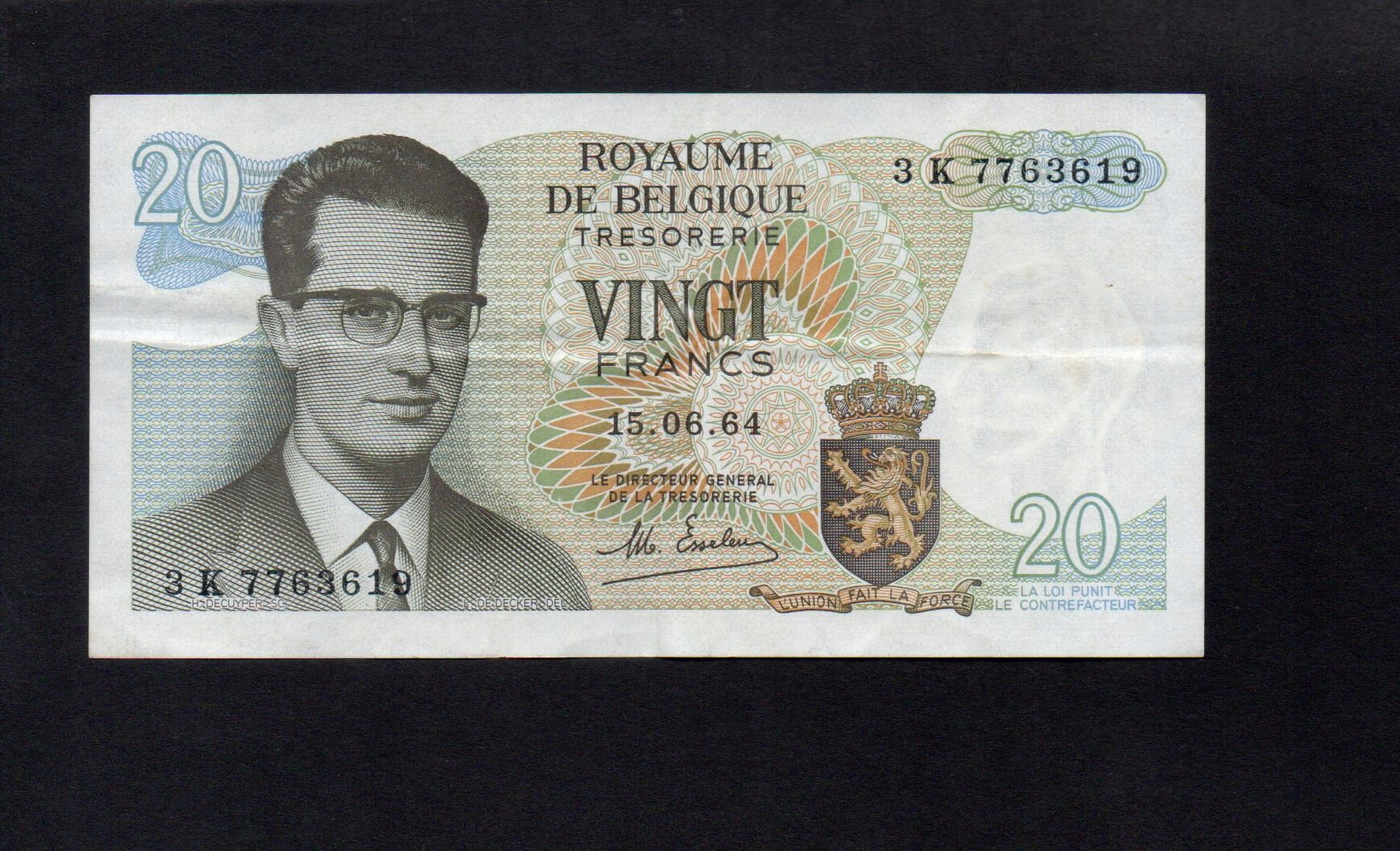БАНКНОТА БЕЛЬГІЇ -- 20 ФРАНШ -- 1964 РОКУ