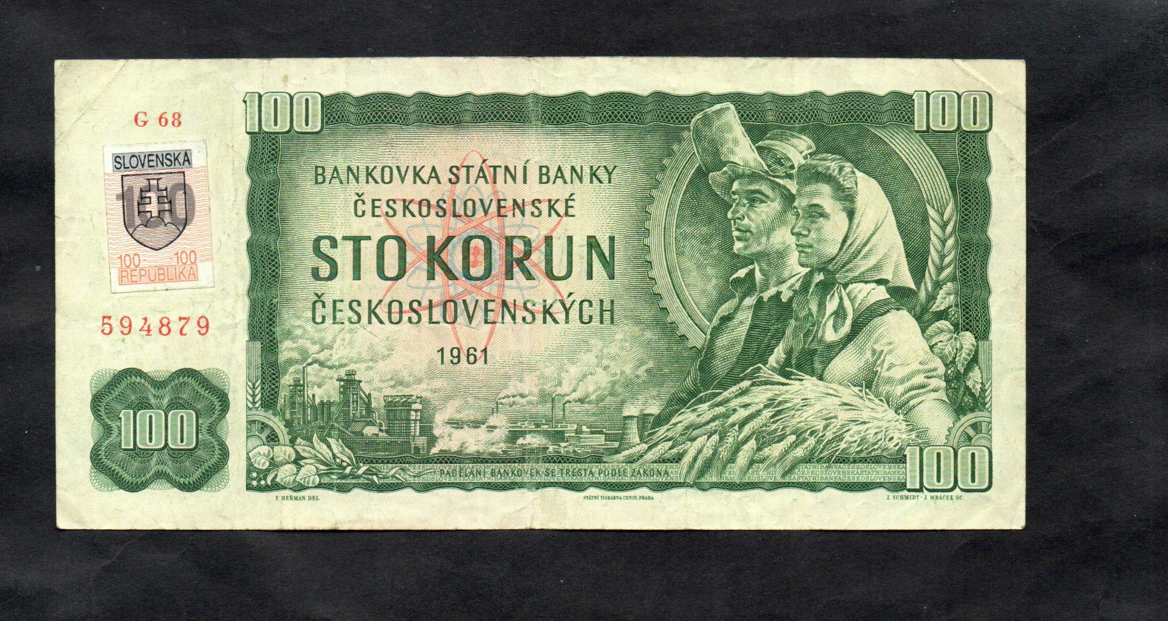 Банкнота Чехословаччини -- 100 крон -- 1961 + МАРКА, НАЛІПКА