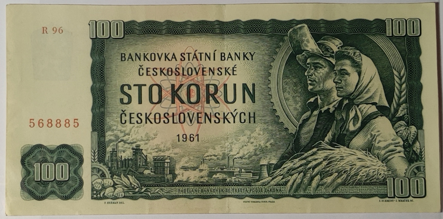 Банкнота Чехословаччини номіналом 100 крон 1961 року, серія R 96