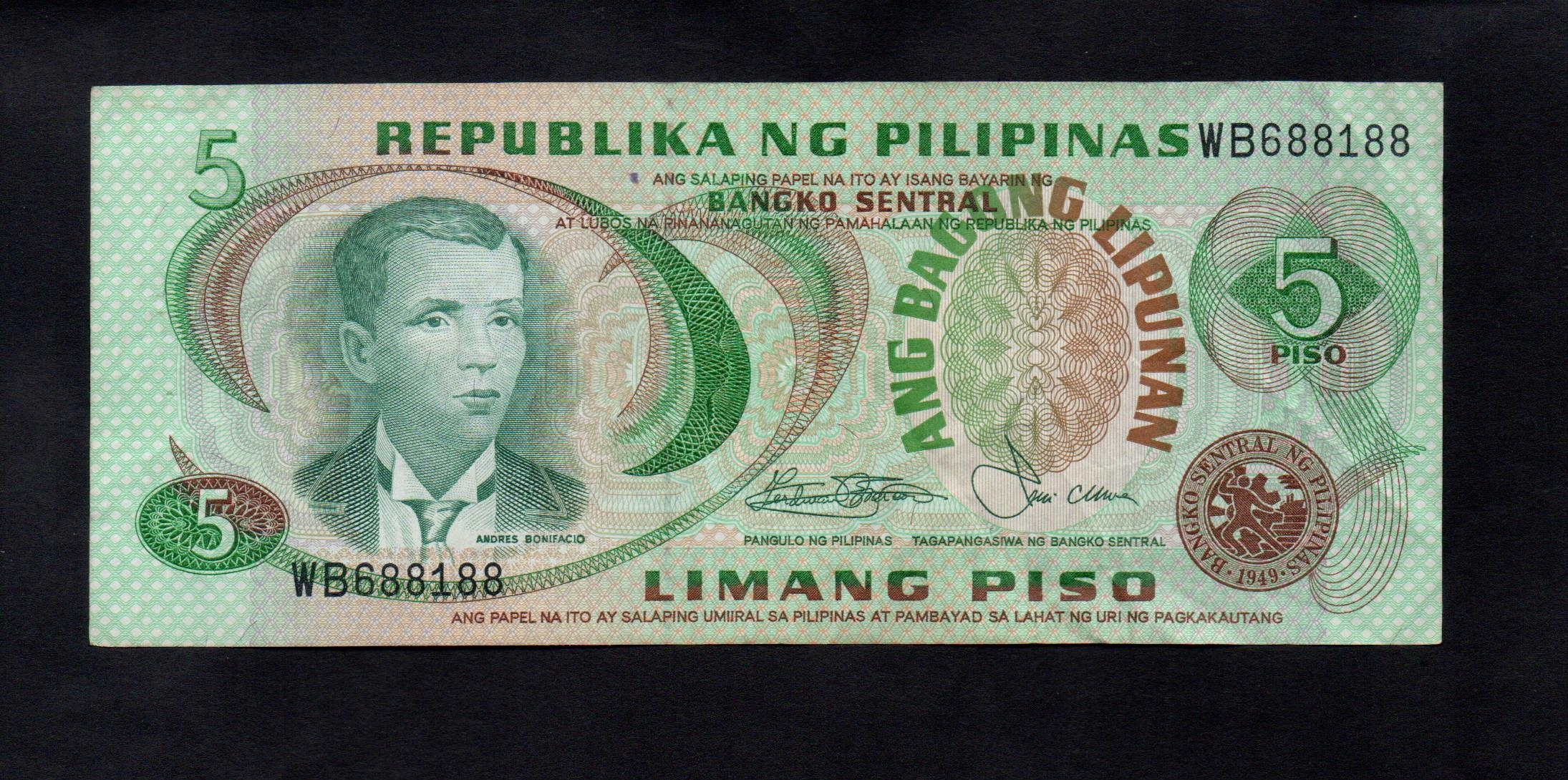Банкнота ФІЛІППІНИ -- 5 ПІСО -- 1978 рік, (B118)