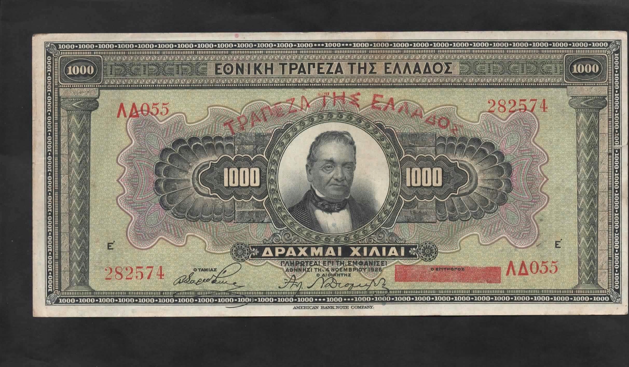 БАНКНОТА ГРЕЦІЇ -- 1000 ДРАХМ -- 1926