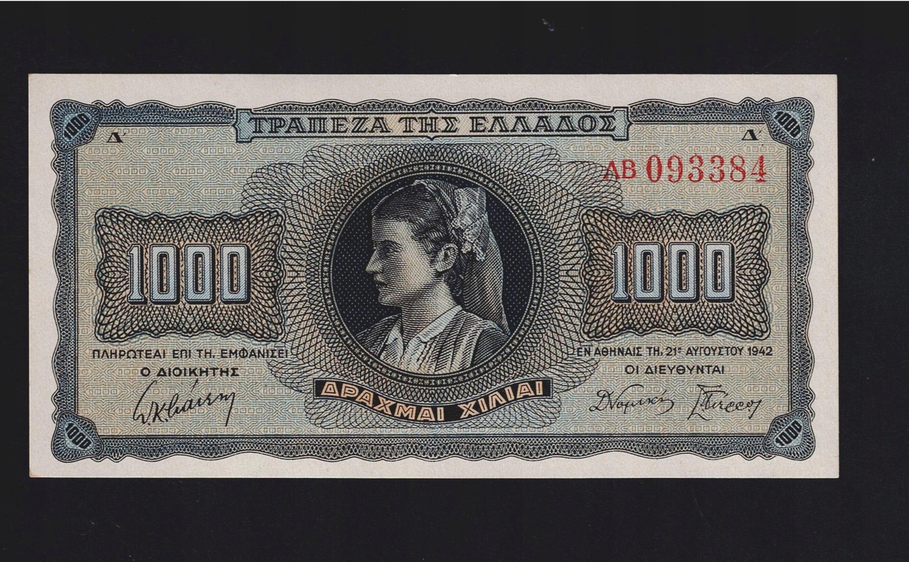 БАНКНОТА ГРЕЦІЇ -- 1000 ДРАХМ -- 1942