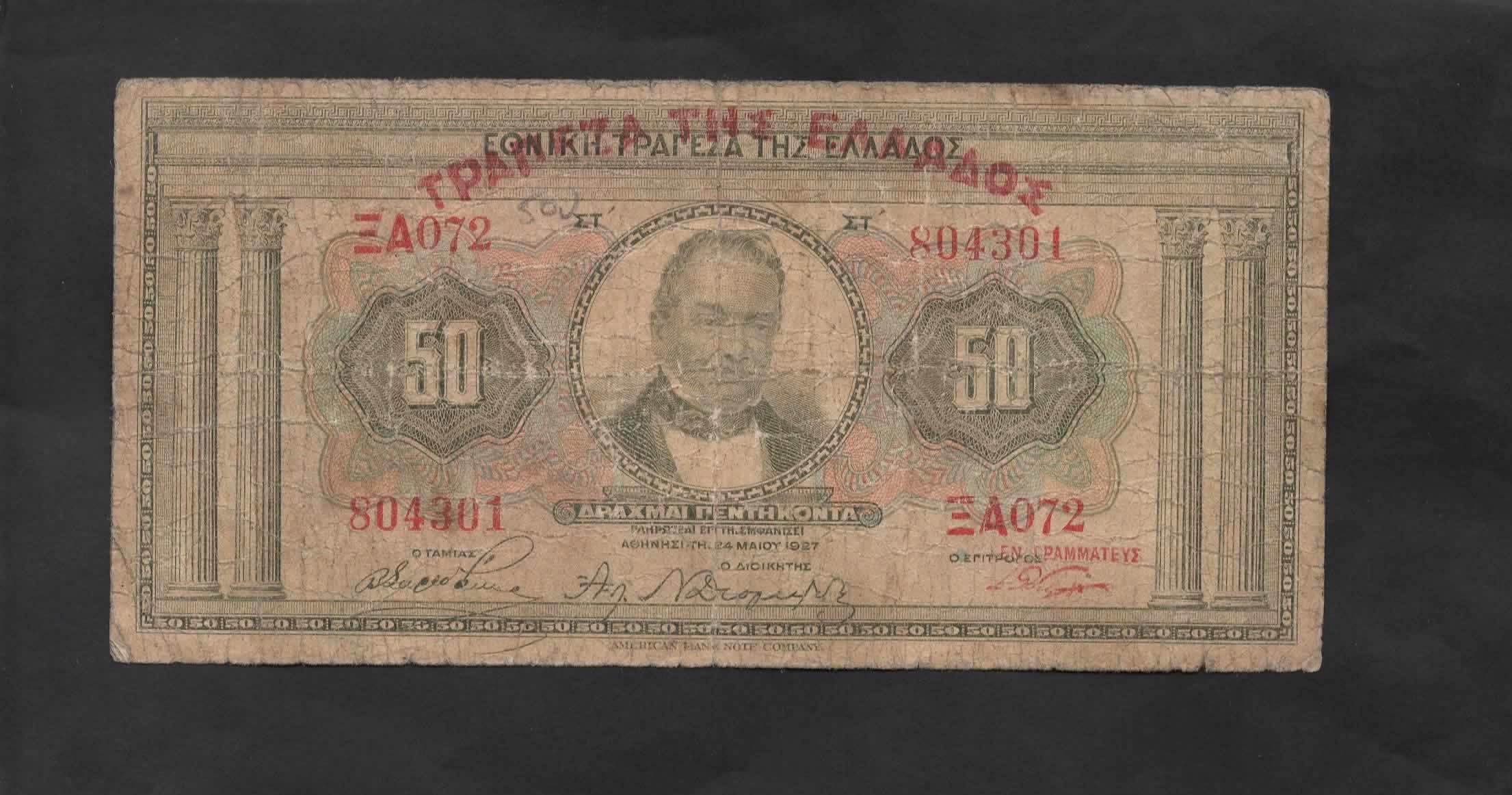 БАНКНОТА ГРЕЦІЇ -- 50 драхм -- 1927 р