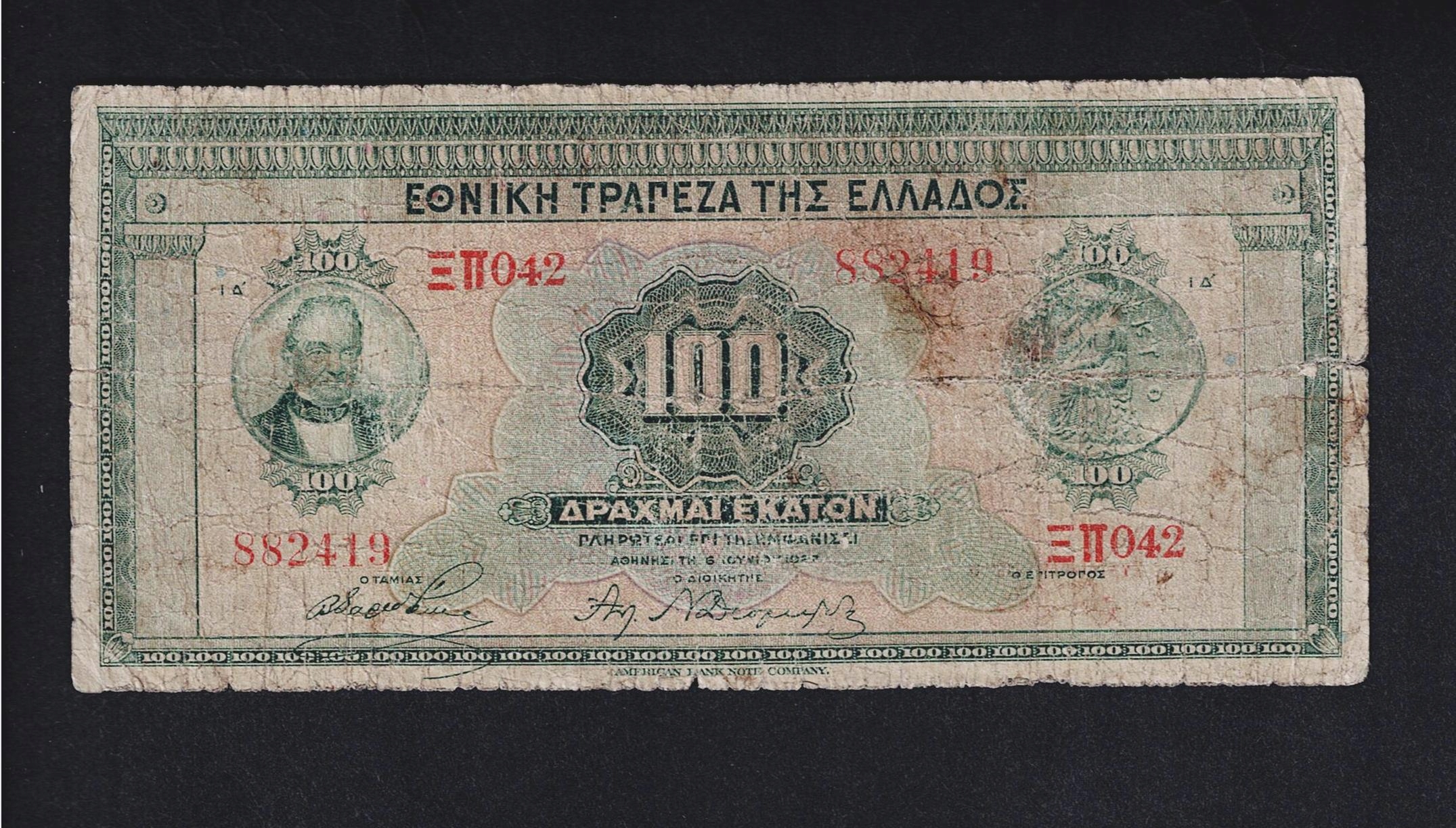 БАНКНОТА ГРЕЦІЯ -- 100 ДРАХМ -- 1927 рік