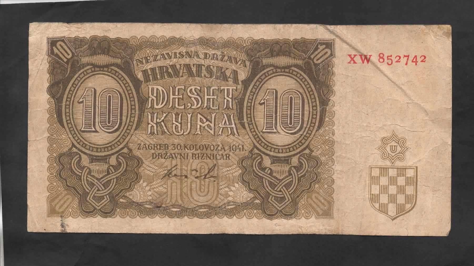 БАНКНОТА ХОРВАТІЇ -- 10 кун -- 1941 рік