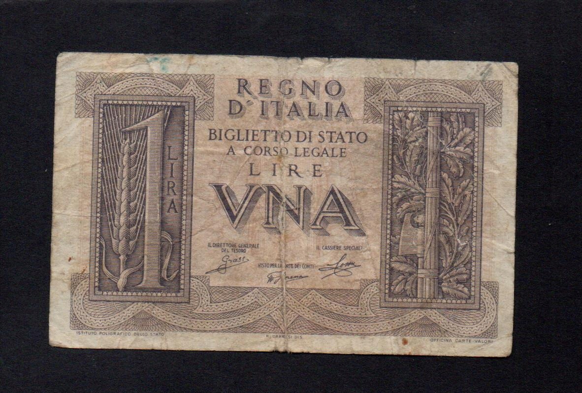 Банкнота ІТАЛІЯ -- 1 ліра -- 1939 р