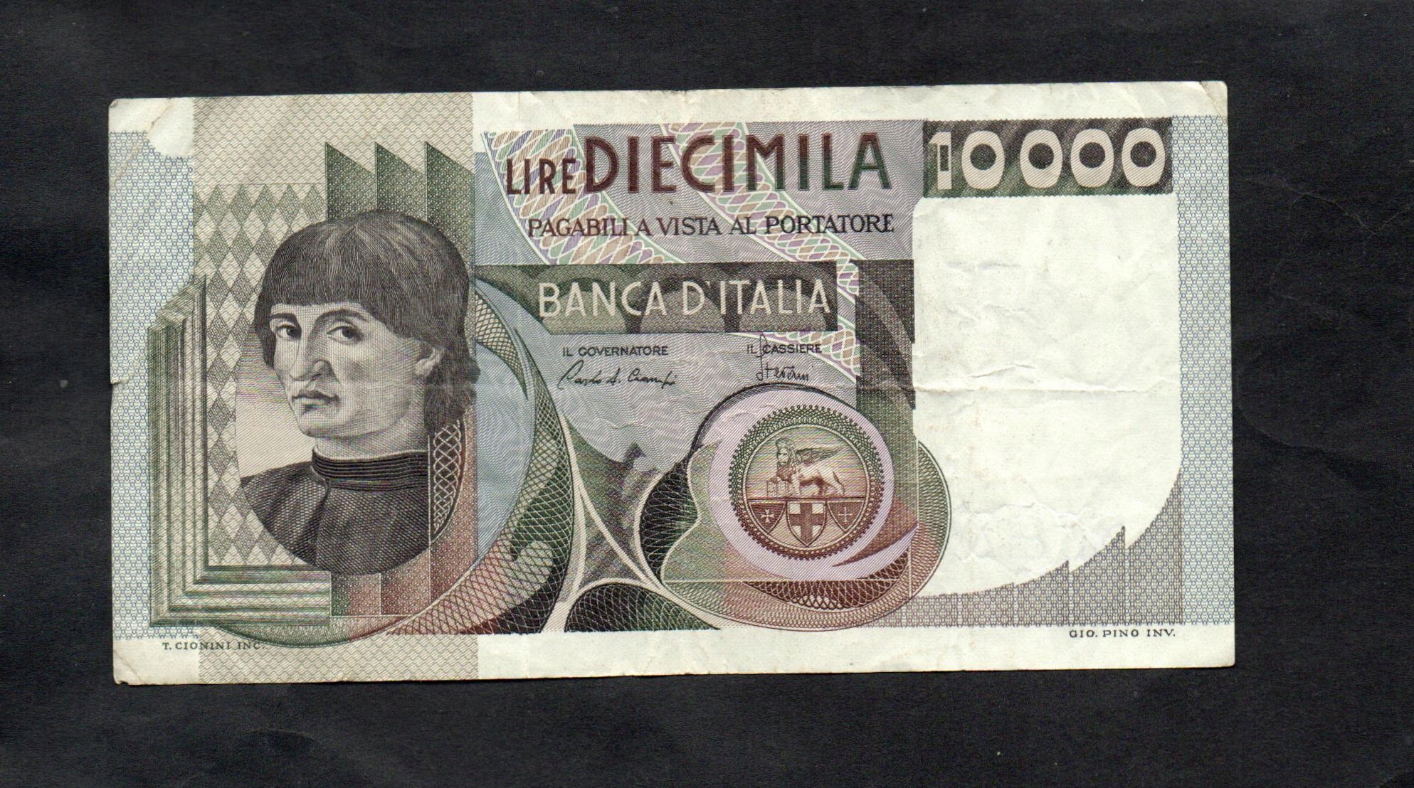 Банкнота ІТАЛІЯ -- 10 000 лір -- 1982 р