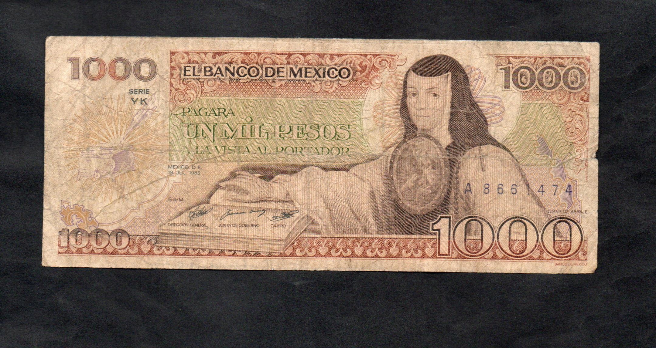 БАНКНОТА МЕКСИКИ -- 1000 ПЕСОС -- 1985 (B203)