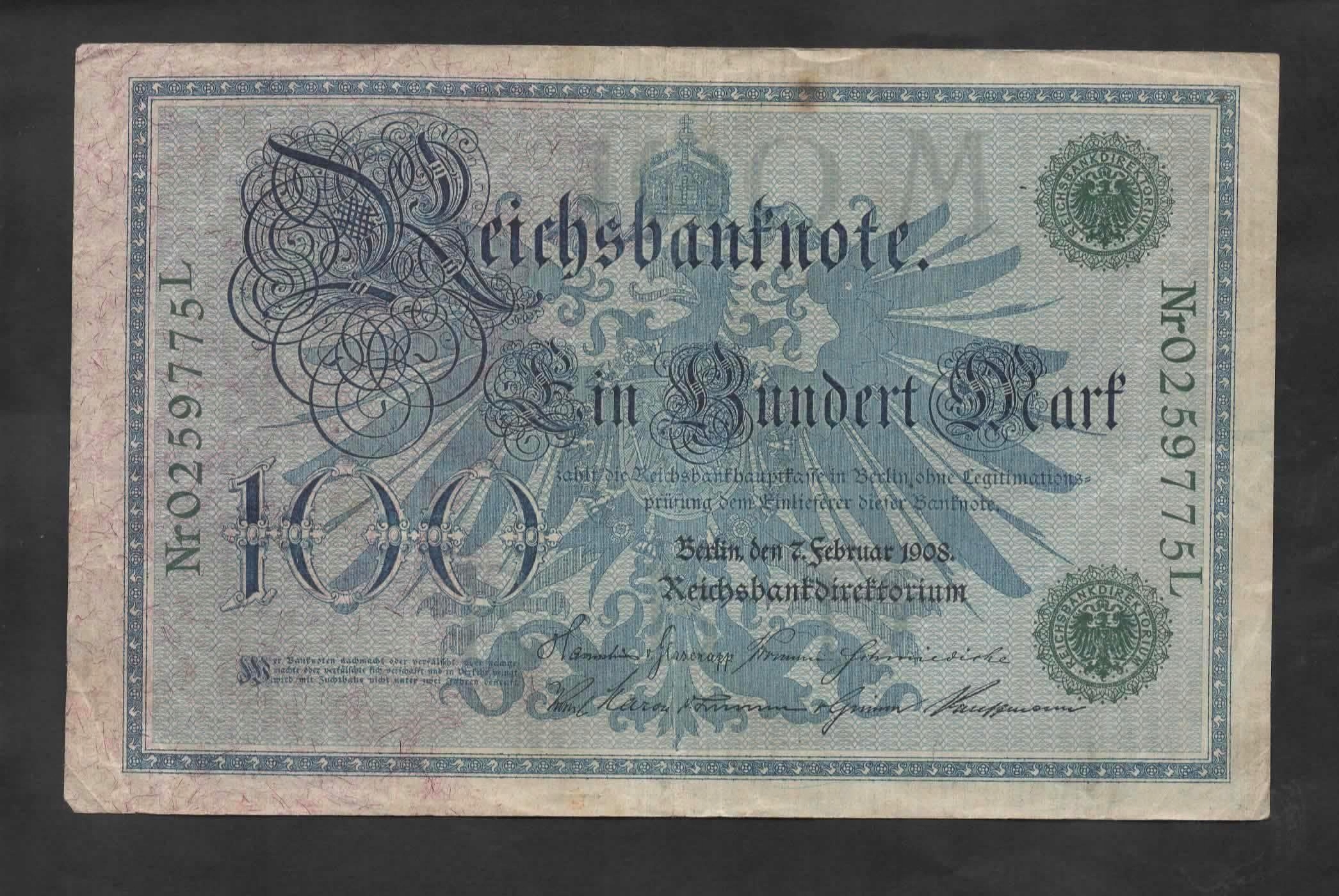 Банкнота Німеччина - 100 Марек - 1908 - Зелена печатка