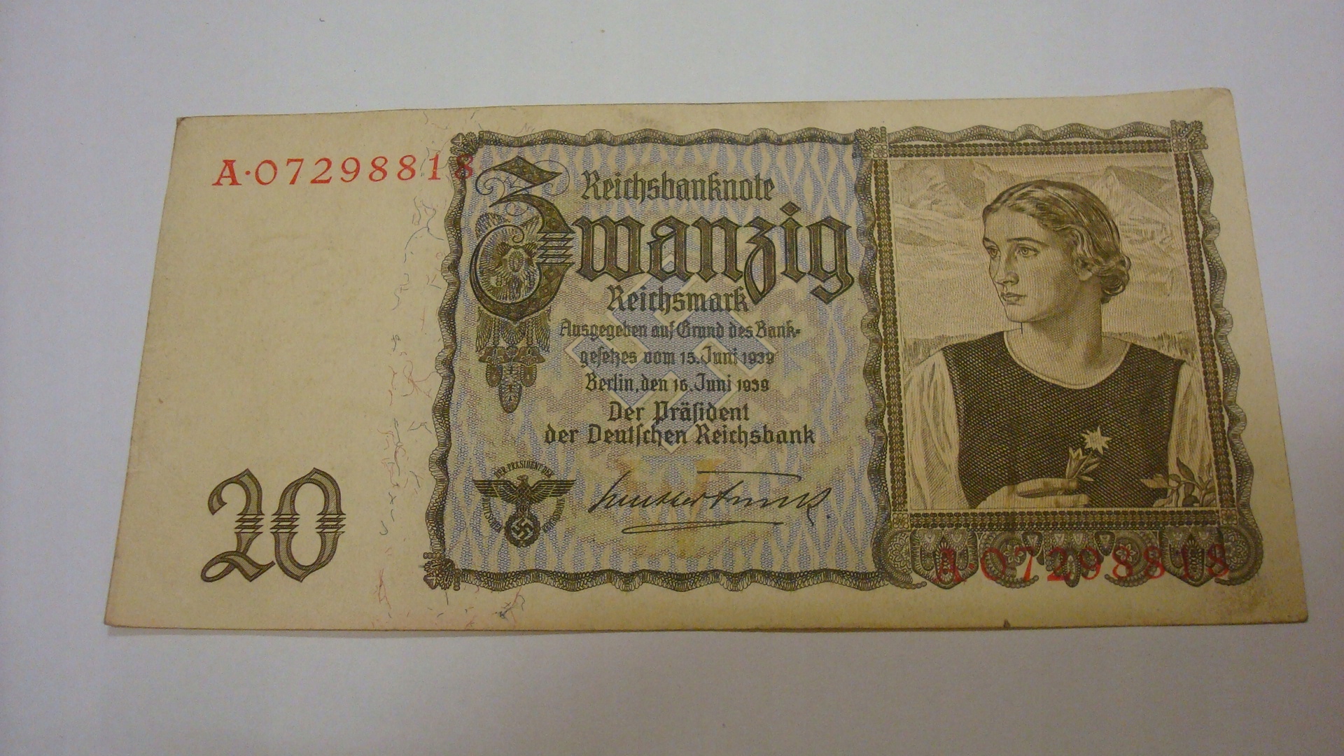 банкнота Німеччини номіналом 20 марок 1939 року