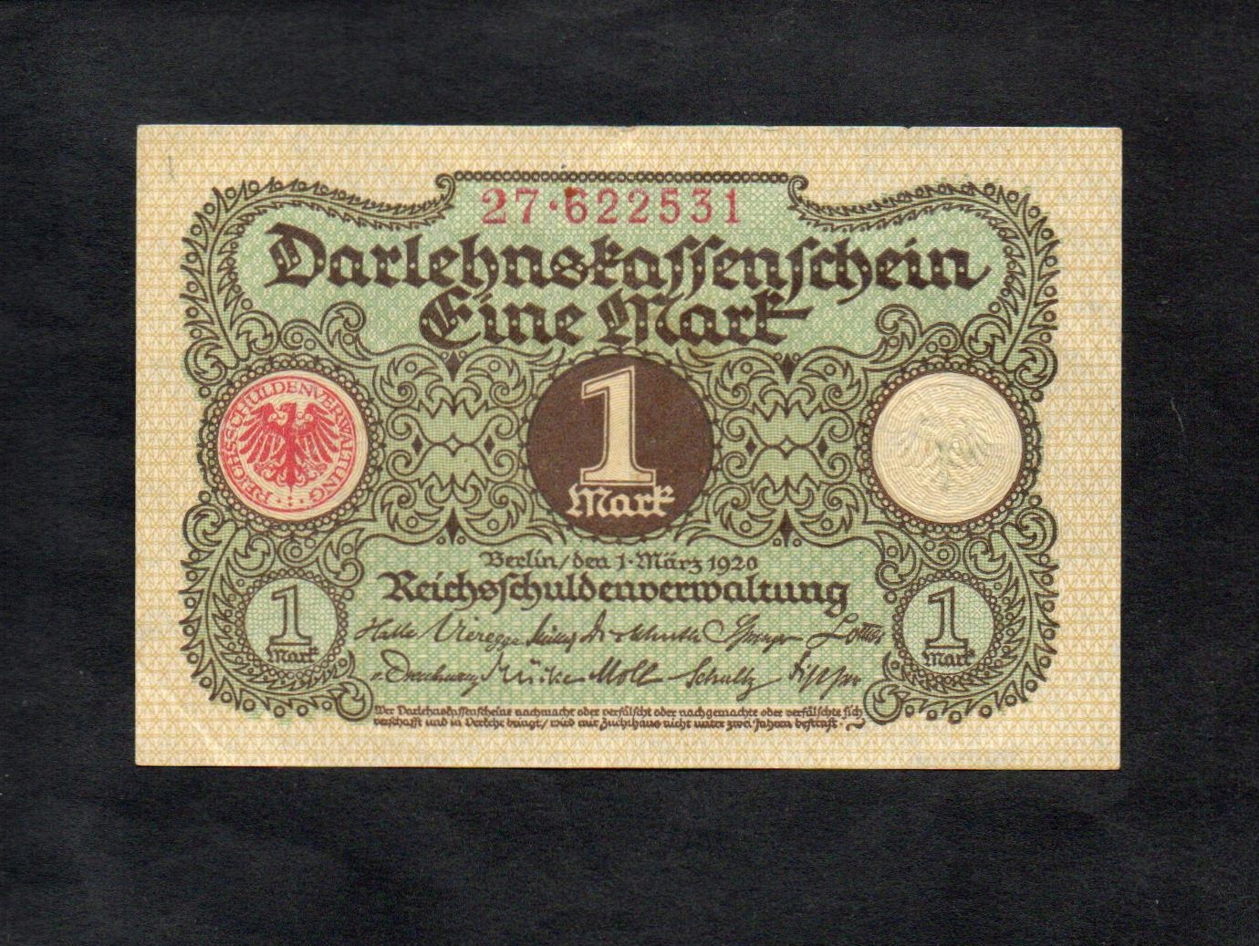 БАНКНОТА НІМЕЧЧИНИ -- 1 марка -- 1920 р