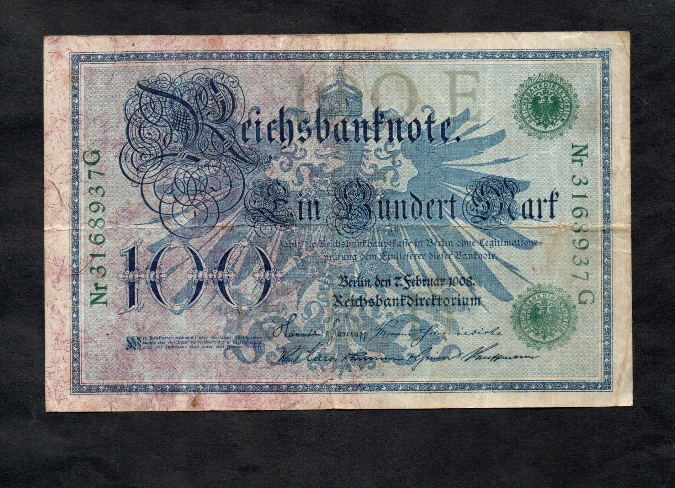 БАНКНОТА НІМЕЧЧИНИ -- 100 марок -- 1908 -- ЗЕЛЕНА МАРКА