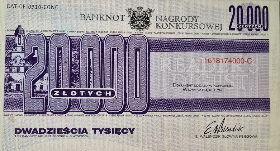 Банкнота номіналом 20 000 злотих конкурсу Reader's Digest - серія C