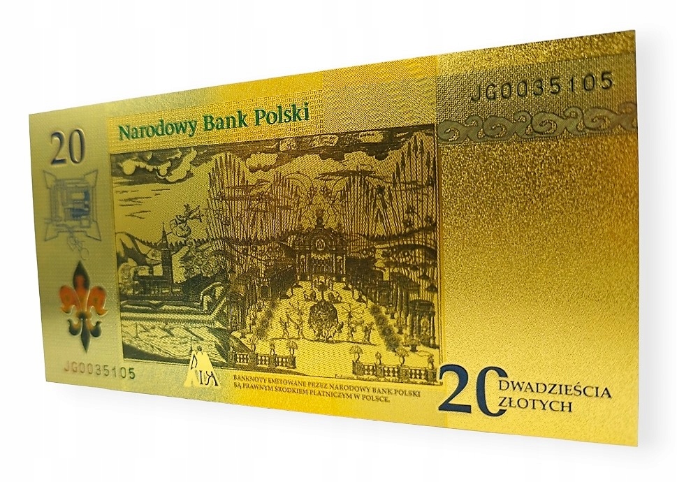 Репліка першої польської колекційної банкноти, виготовленої з ПВХ і покритої фольгою золотого кольору.