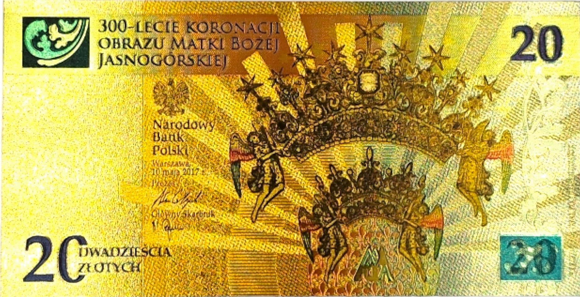 21 серпня 2017 року введено в обіг колекційну банкноту номіналом 20 злотих на честь трьохсотої річниці коронації Образу Матері Божої з Ясної Гори.