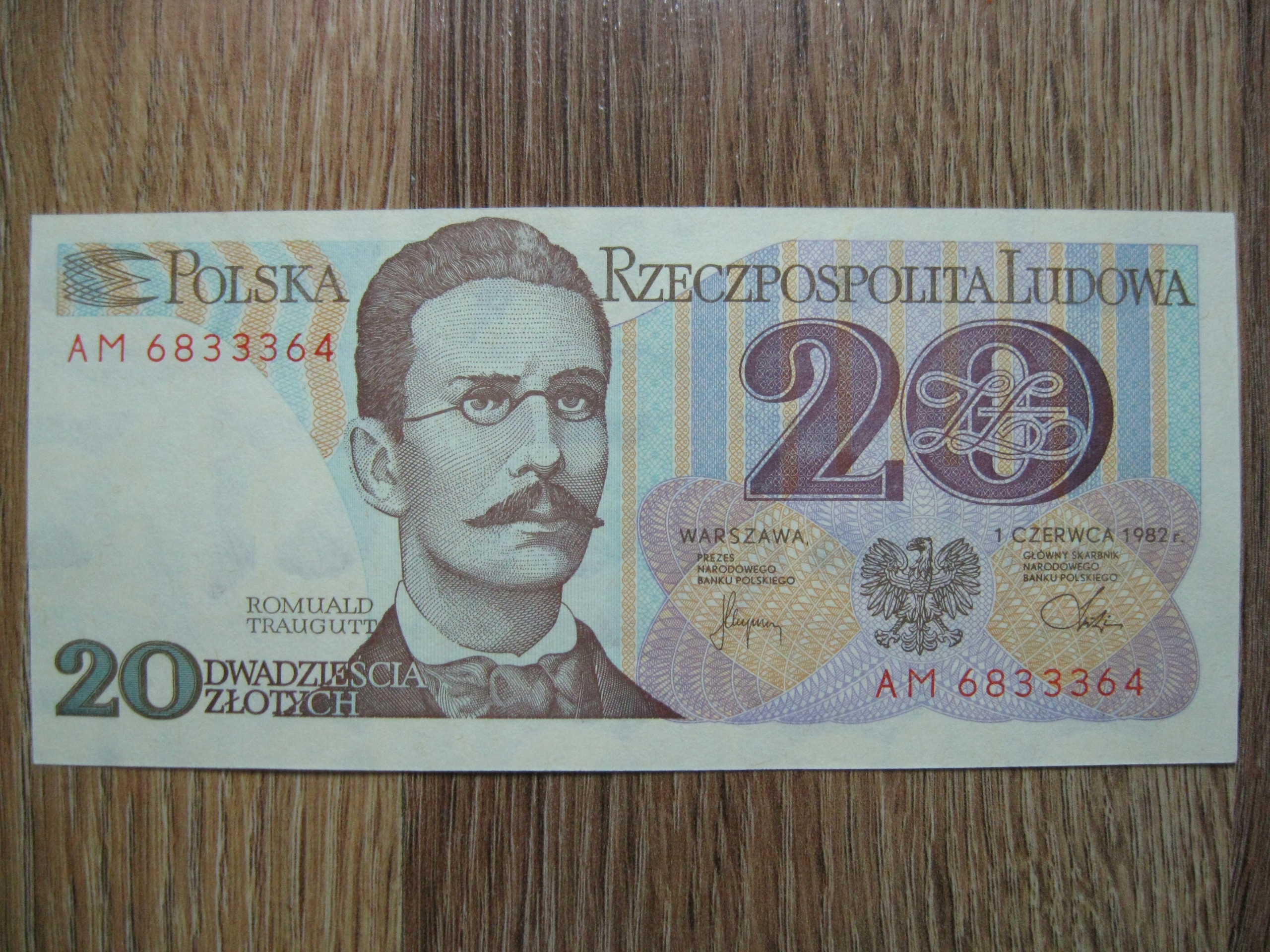 Банкнота PRL 20 Zlotys 1982 R. traugutt