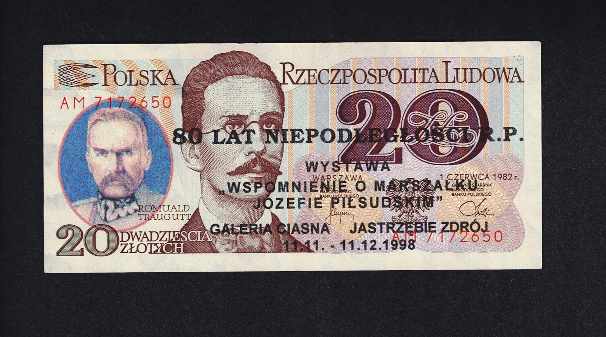 Банкнота Польської народної республіки з друком Юзеф Пілсудським, 80 років незалежності