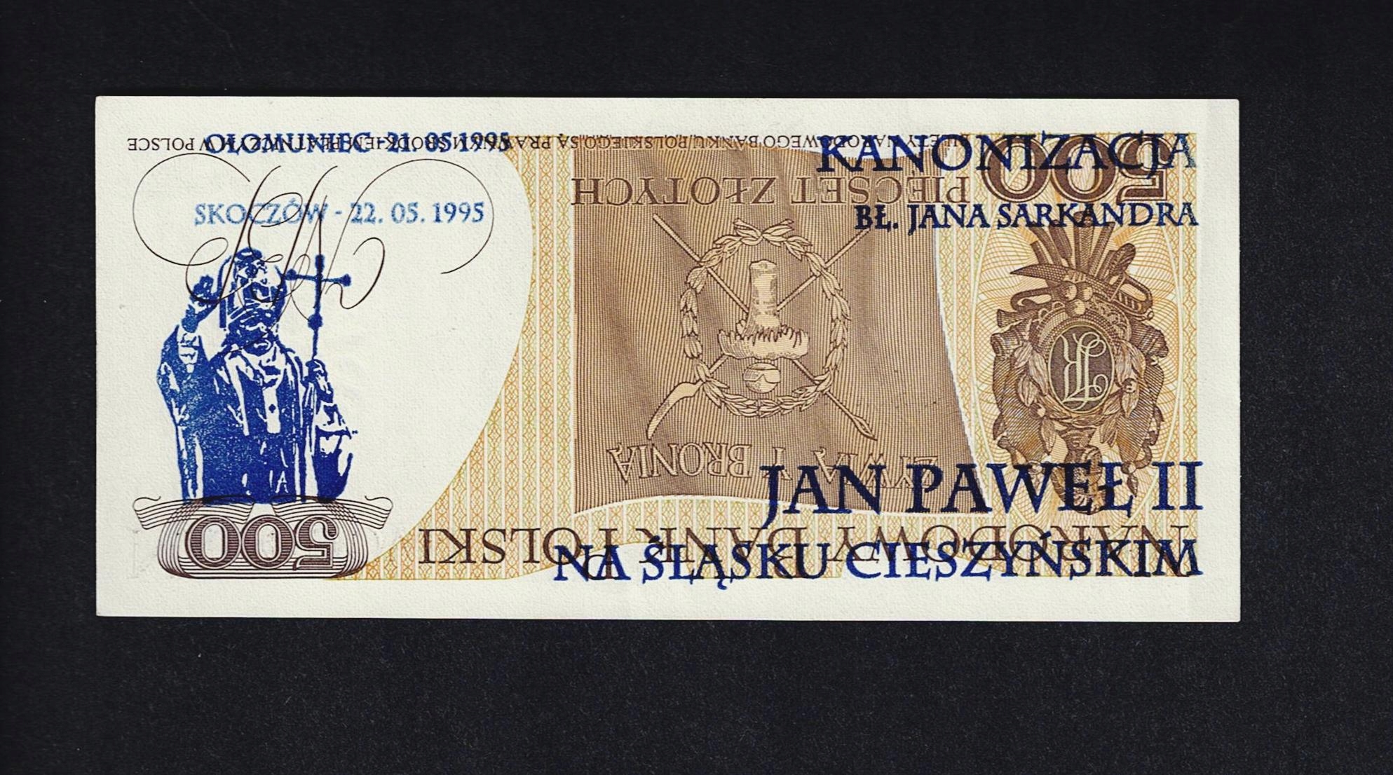 Банкнота PRL з друком John Paul II в Cieszyn Silesia