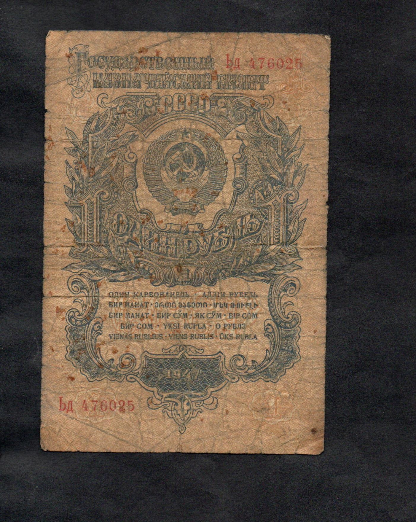 БАНКНОТА РОСІЇ -- 1 рубль -- 1947 р