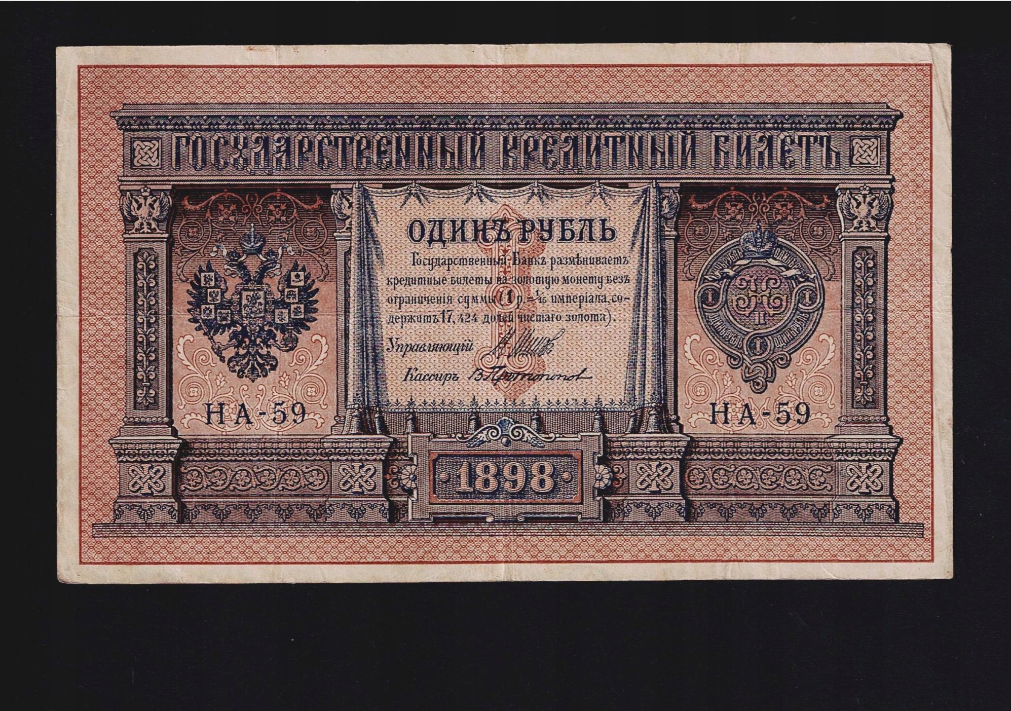 БАНКНОТА РОСІЇ -- 1 рубль 1898 -- SHIPOW - ПРОТОПОПОВ