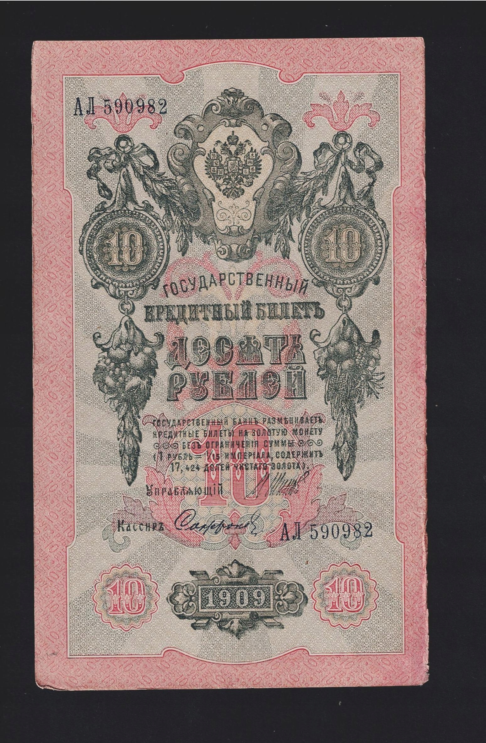 БАНКНОТА РОСІЇ -- 10 рублів -- 1909, ШИПОВ - СОФРОНОВ
