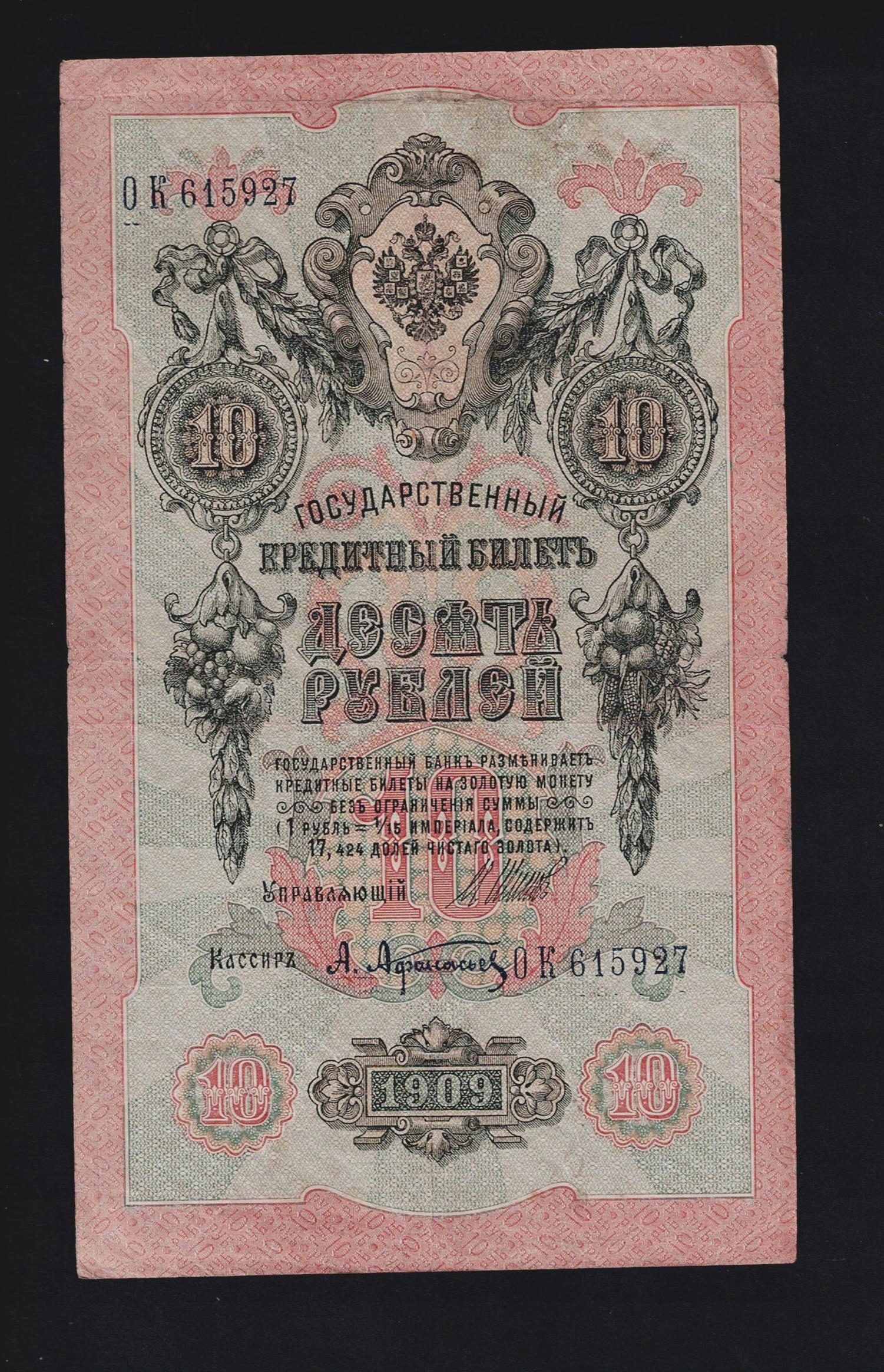 БАНКНОТА РОСІЇ -- 10 рублів -- 1909, SHIPOW - АФАНАСЬЄВ