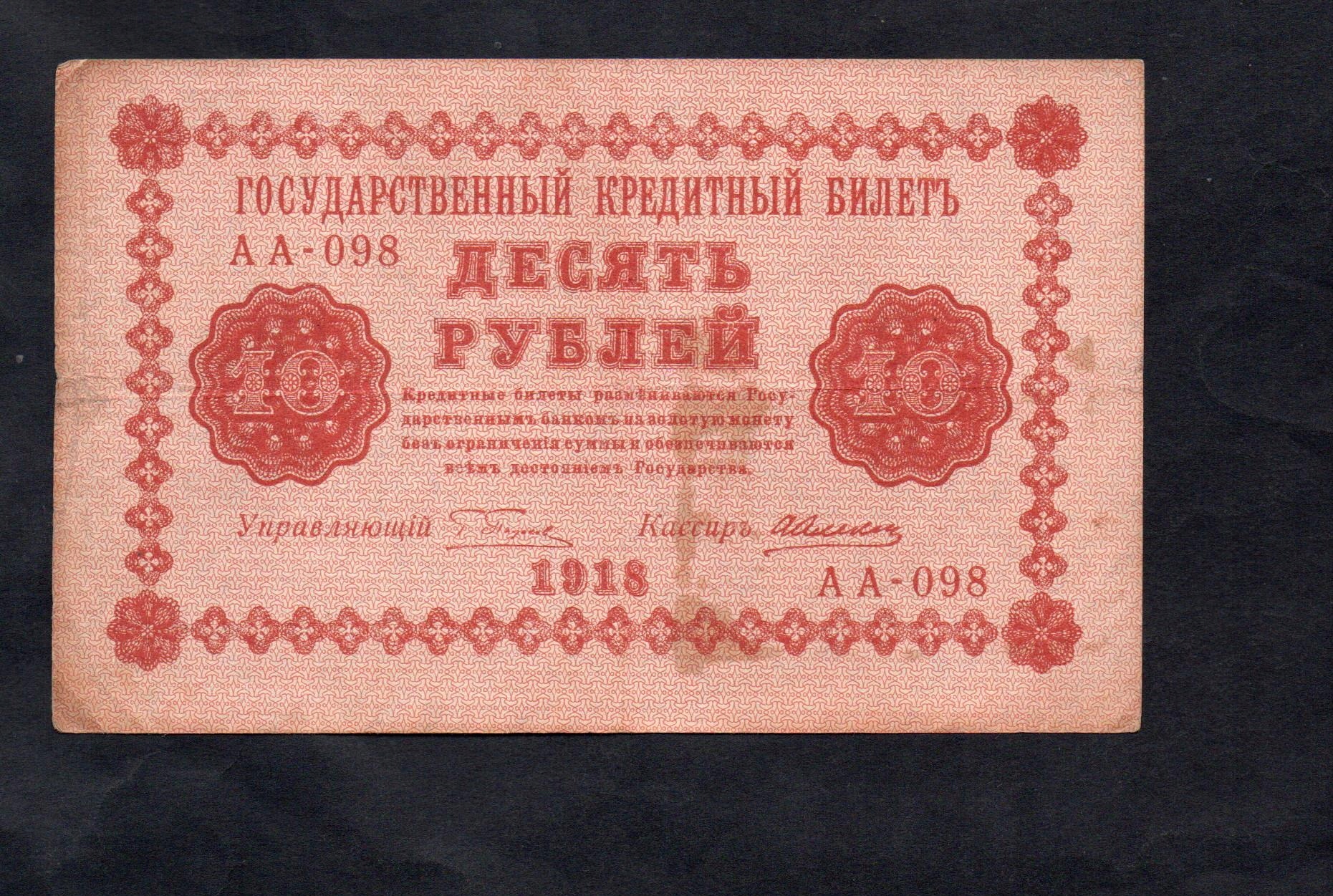 БАНКНОТА РОСІЇ -- 10 рублів -- 1918 р