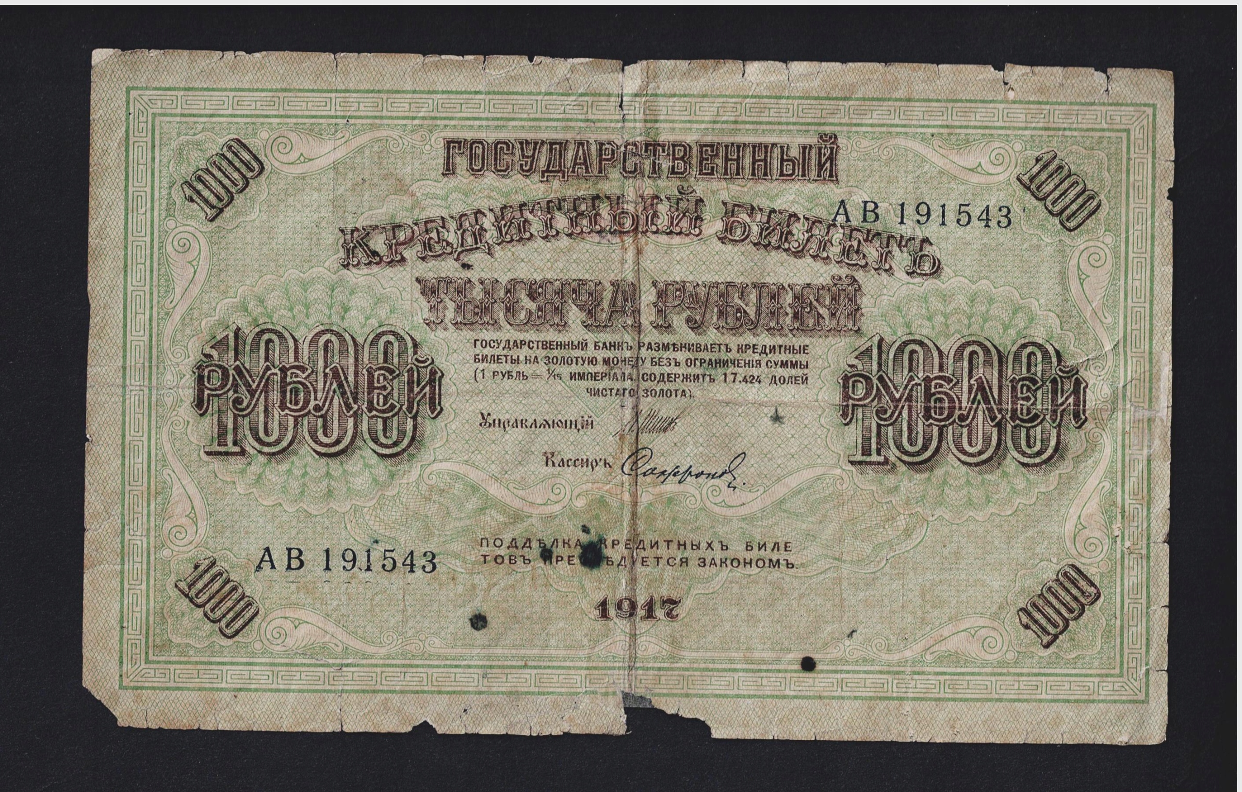 БАНКНОТА РОСІЇ -- 1000 рублів -- 1917 р