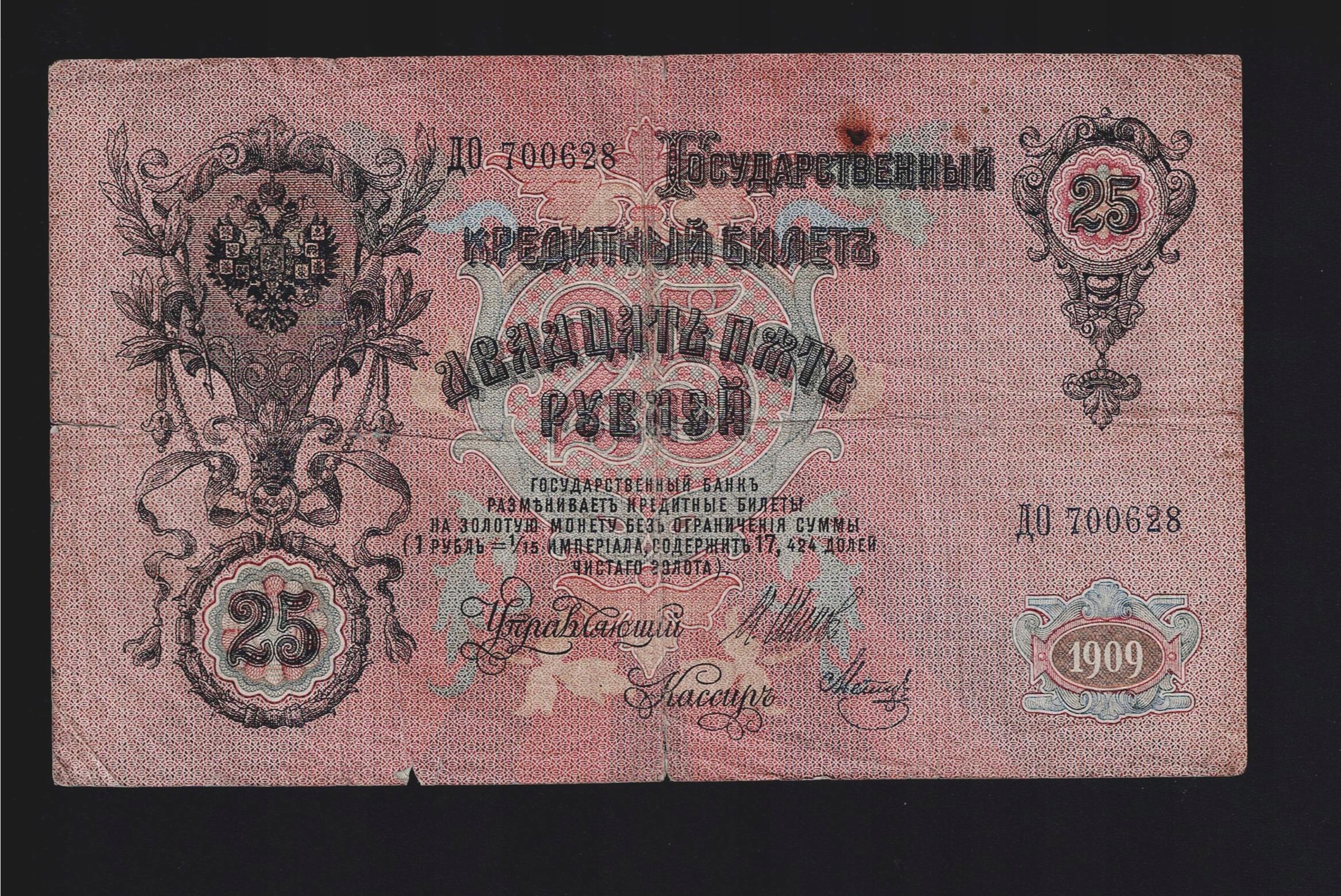 БАНКНОТА РОСІЇ -- 25 рублів -- 1909, SHIPOW - METC