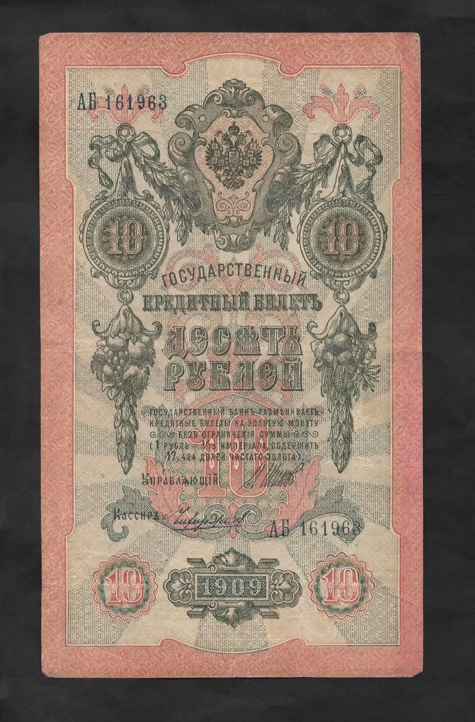 Банкнота Росія - 10 рублів - 1909 р., Szipow - Czichirżyn