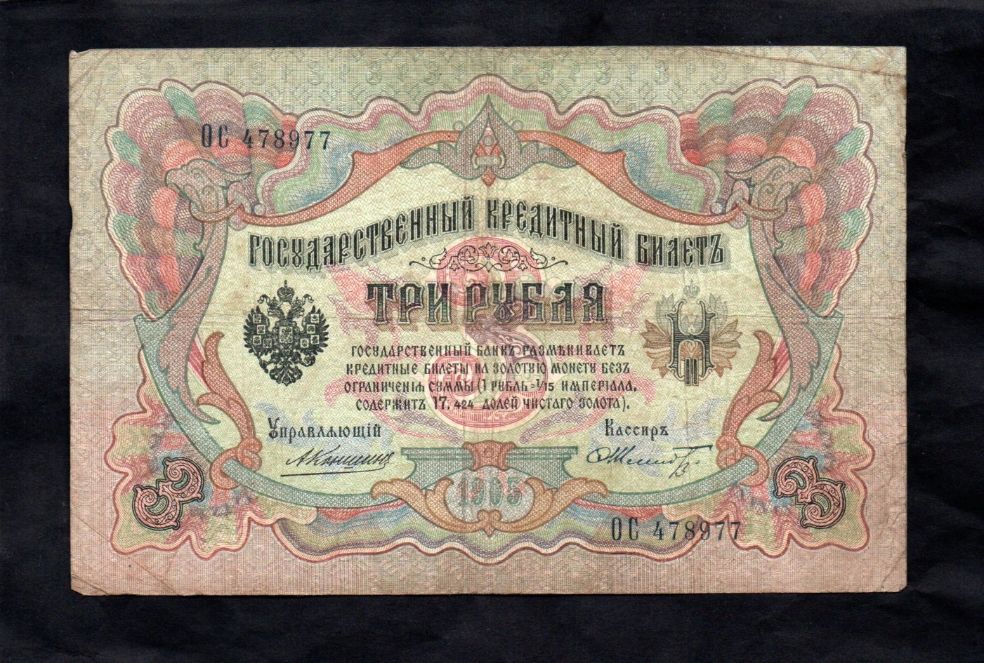 Банкнота Росія - 3 рублі - 1905, Конзін - Смідт