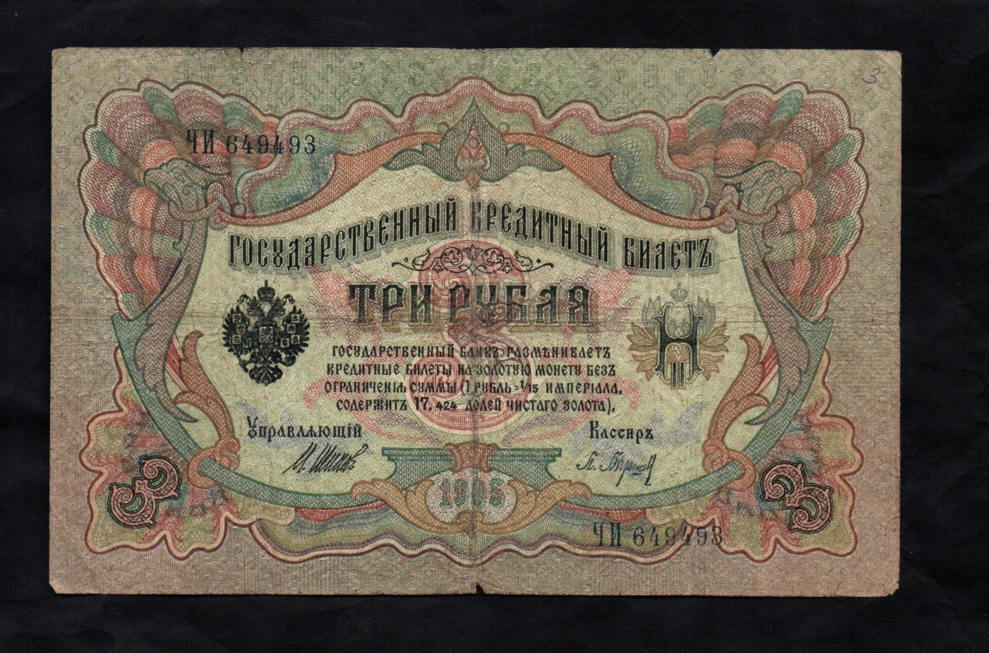 Банкнота Росія - 3 рублі - 1905, Szipow - Baryszew