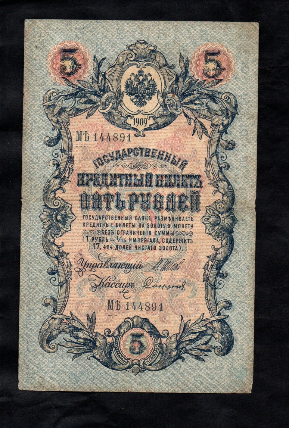 Банкнота Росія - 5 рублів - 1909, Szipow - Sofronow