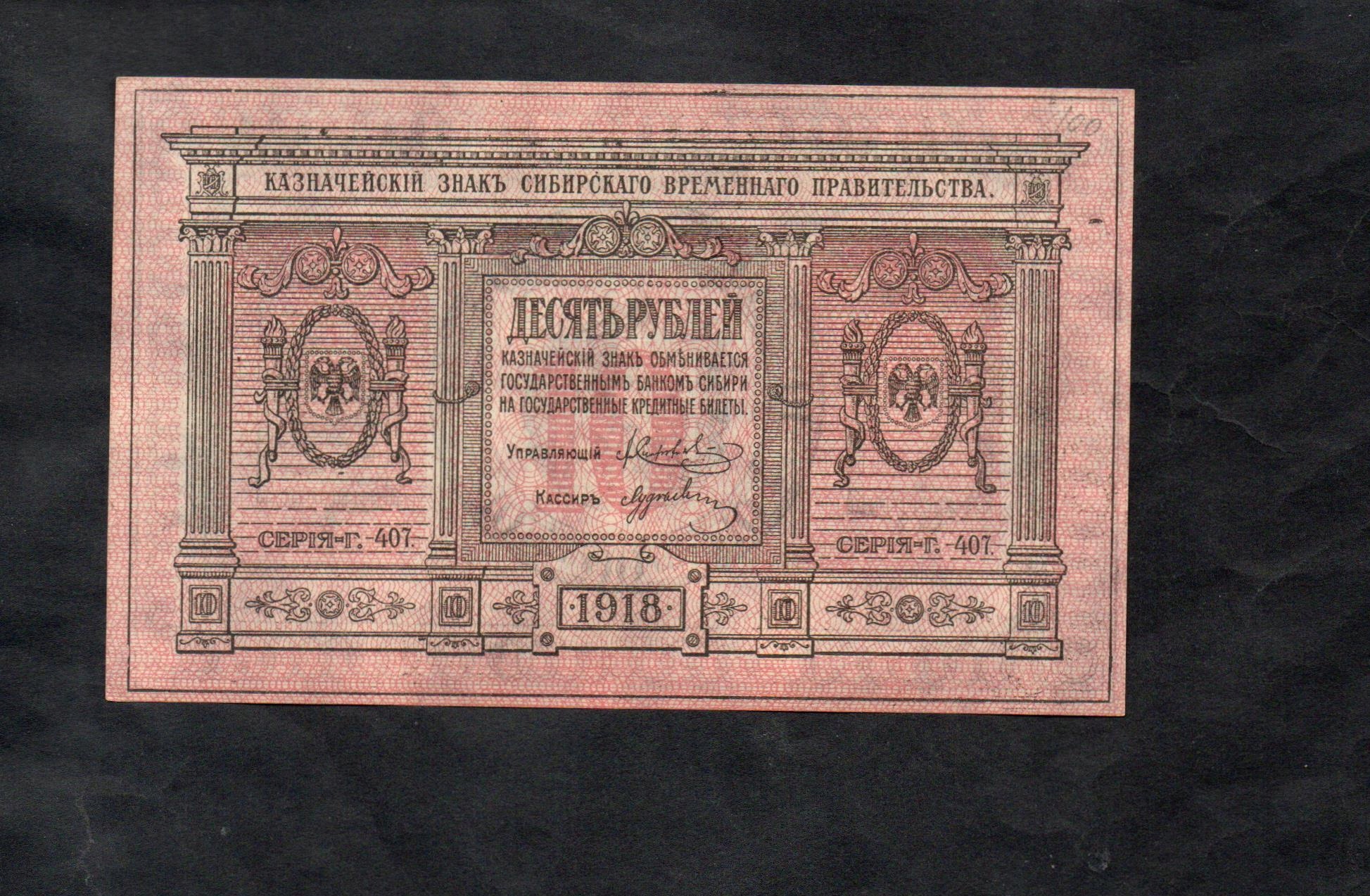 БАНКНОТА РОСІЯ, СИБІР -- 10 рублів -- 1918 р
