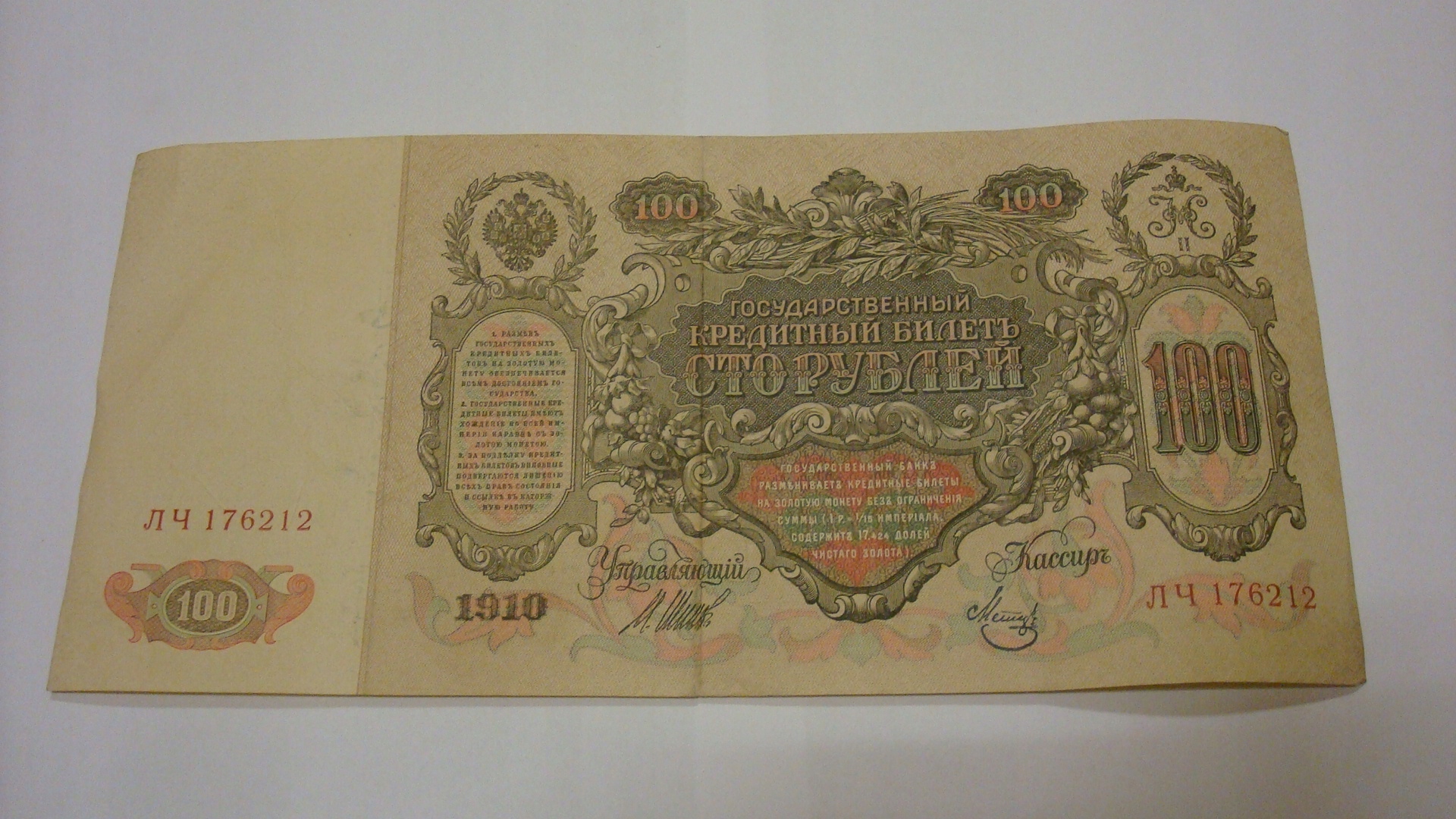 Банкнота Росія 100 рублів 1910 року стан 3+