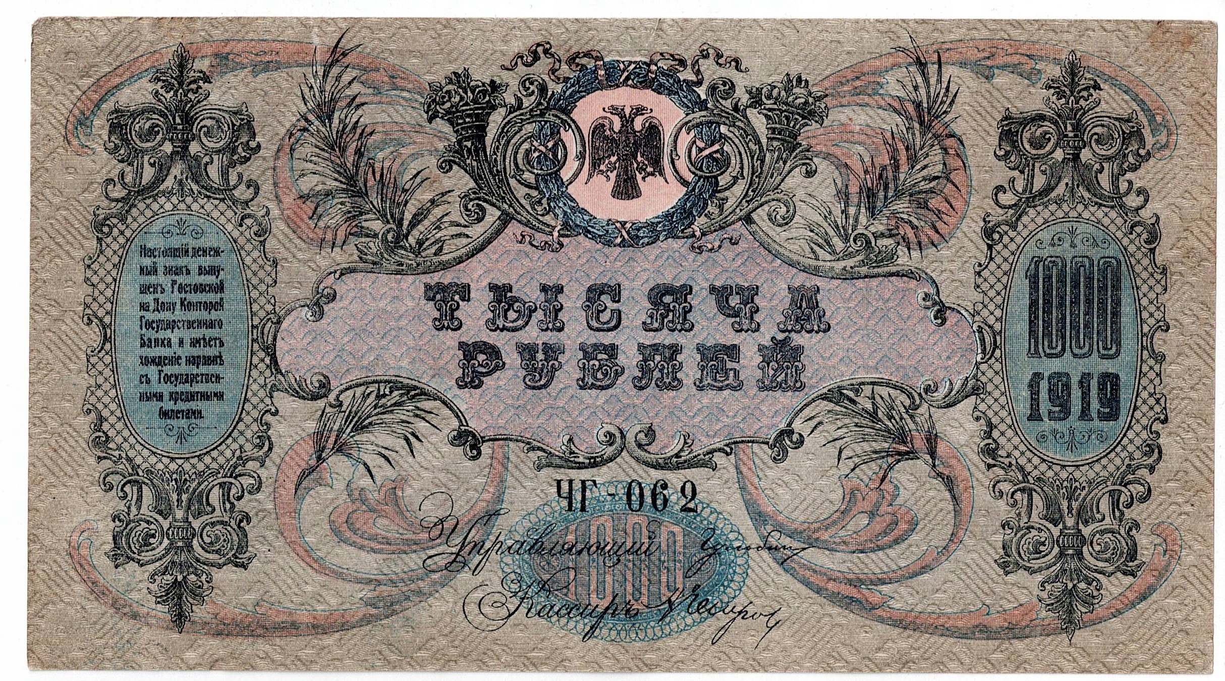 Опис: Банкнота, Росія 1000 рублів 1919 Ростов