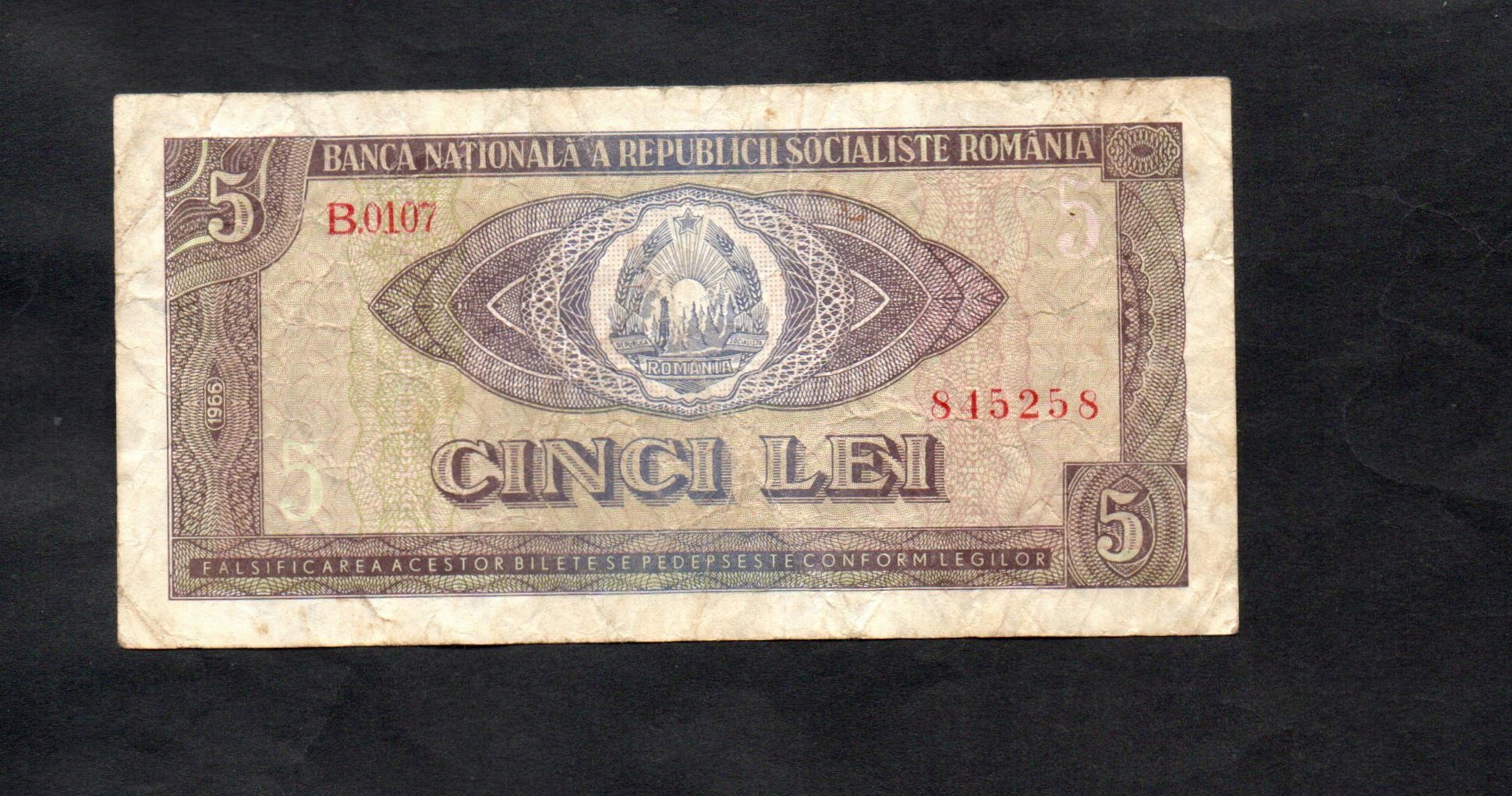 БАНКНОТА РУМУНІЇ -- 5 лей -- 1966