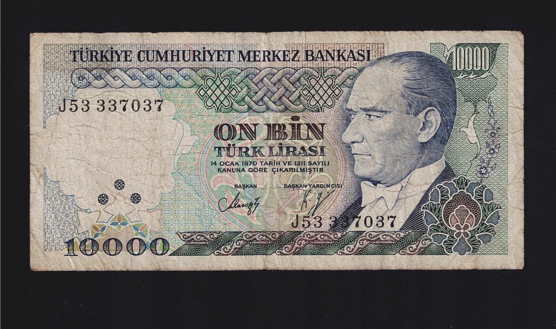 БАНКНОТА Туреччина -- 10 000 лірасі -- 1970 р