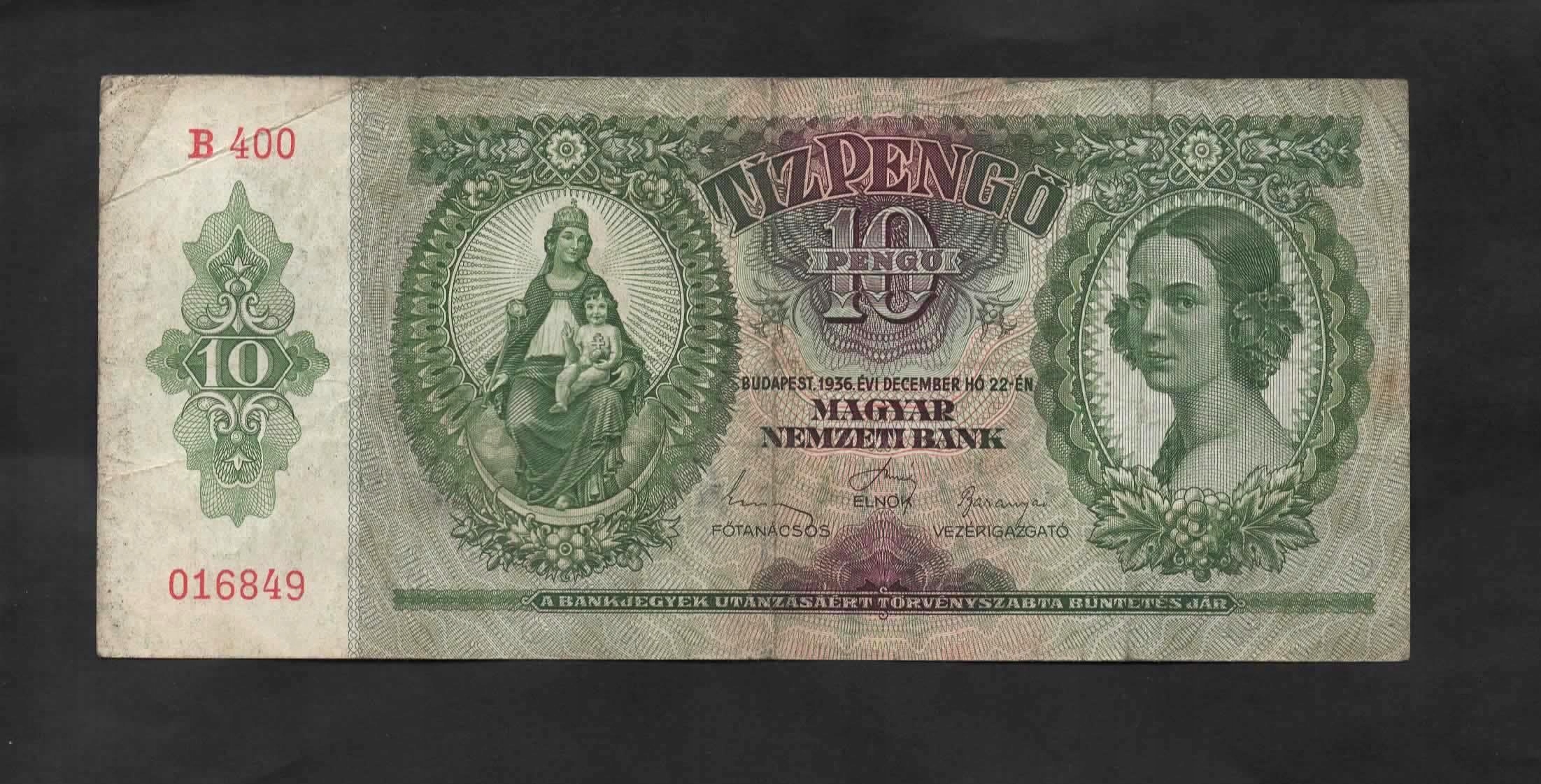 БАНКНОТА УГОРЩИНИ -- 10 пенго -- 1936 р