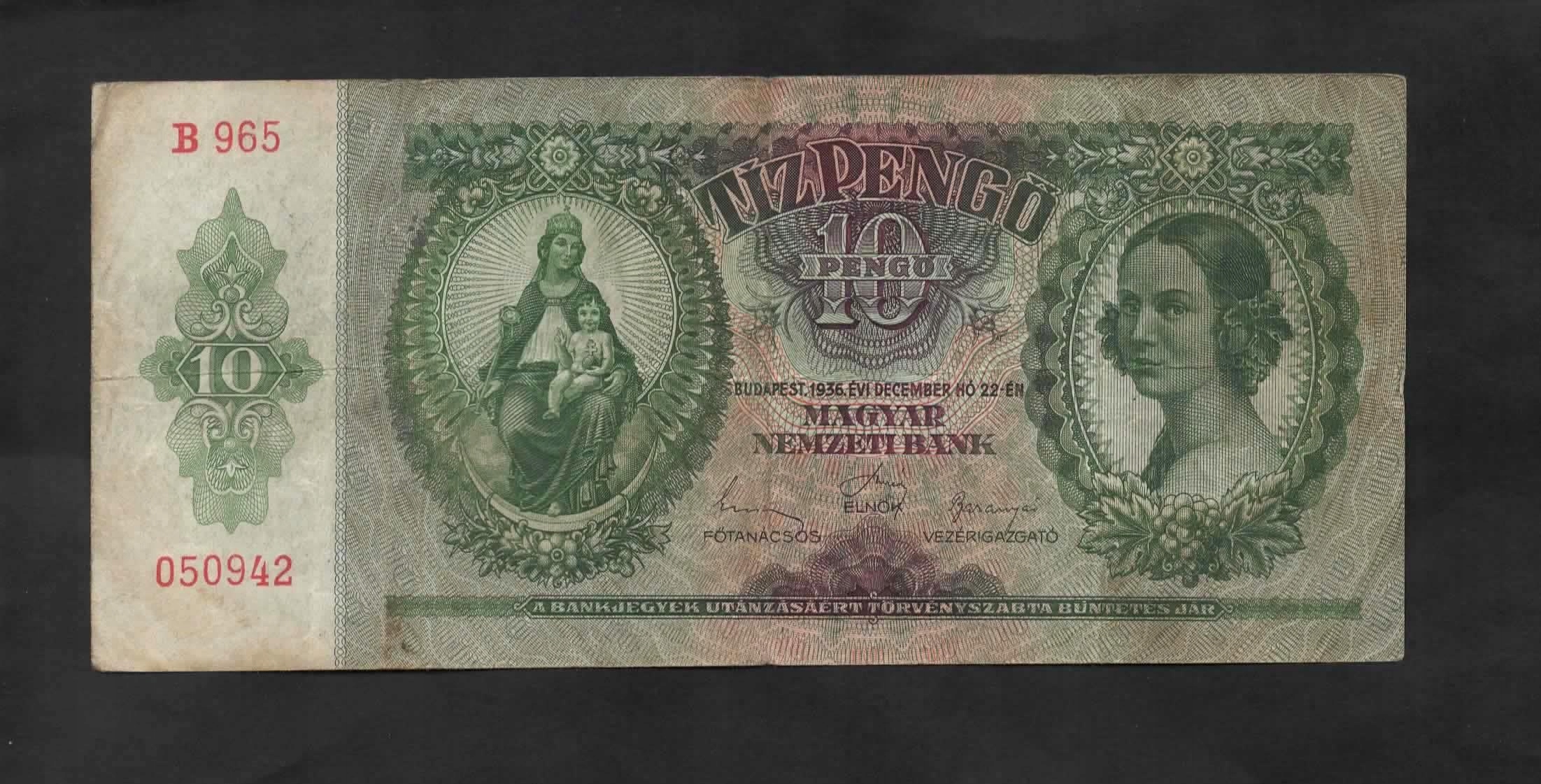 БАНКНОТА УГОРЩИНИ -- 10 пенго -- 1936 р