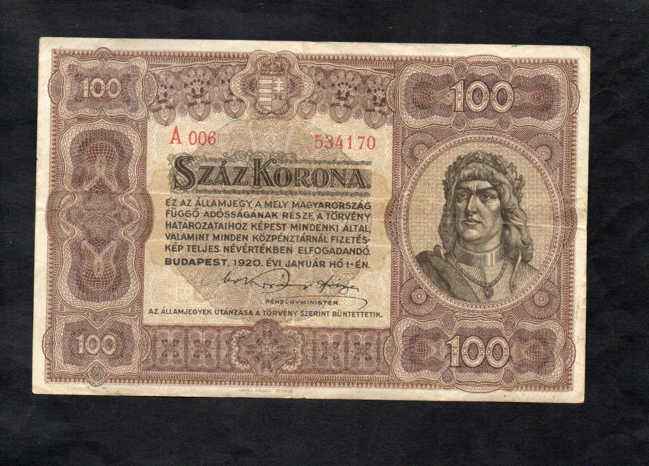 БАНКНОТА УГОРЩИНИ -- 100 крон -- 1920 р