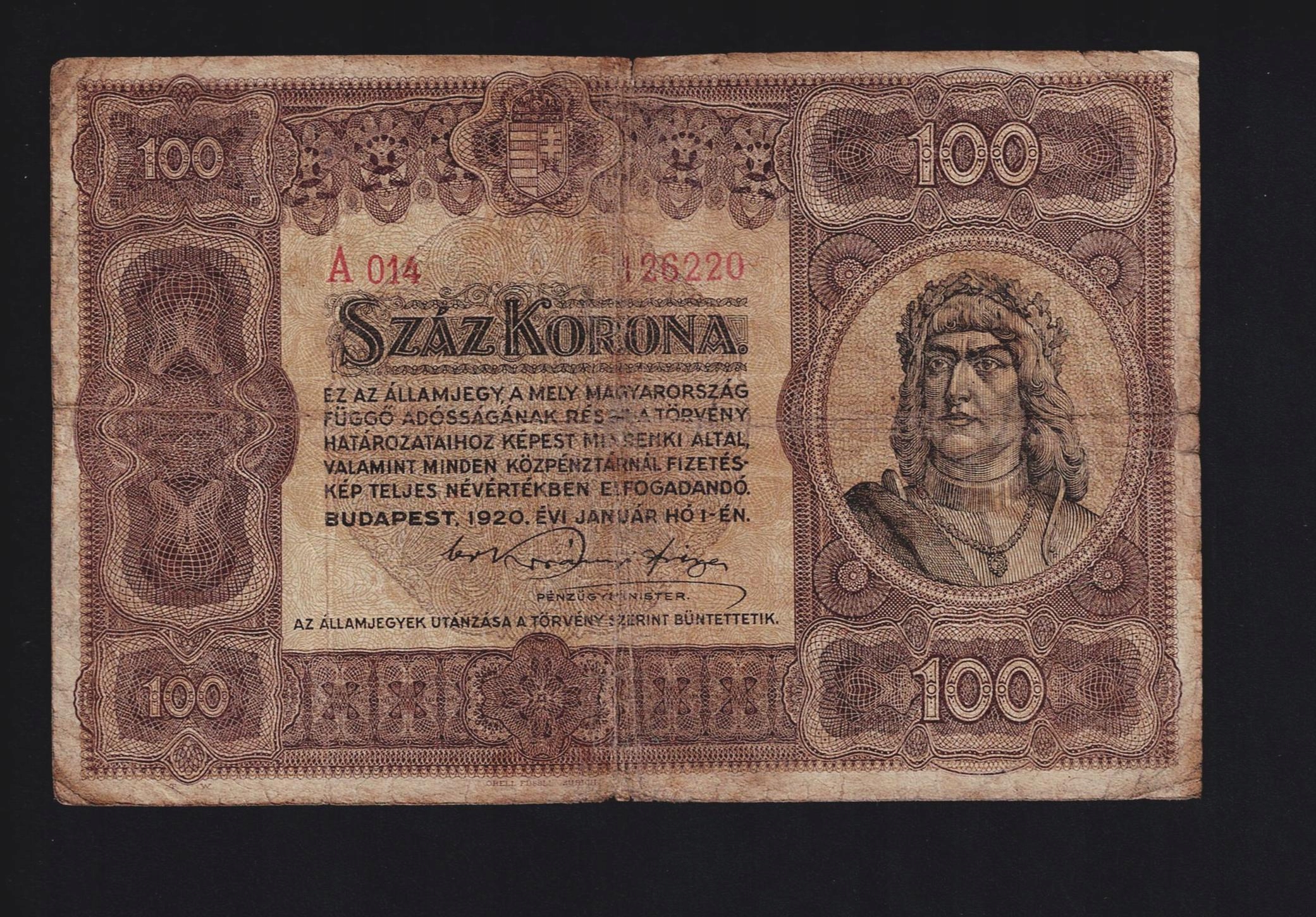 БАНКНОТА УГОРЩИНИ -- 100 крон -- 1920 р